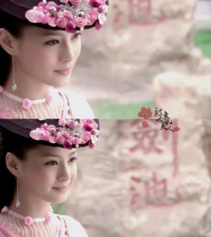 《浣花洗剑录》里的珠儿,一出场就以粉嫩粉嫩的形象映入观众的眼帘,很淑女很甜美的样子,她的头上和脱尘一样覆盖了一张饼,粉色的玫瑰在上面挨挨挤挤的绽放,饶有诗意。