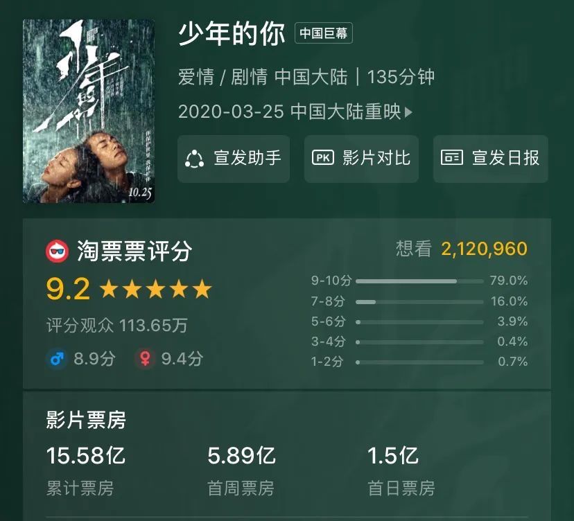 作为一个知名度的简单参考――知乎评价人数上《少年的你》是71660人,《叶问4》5795人、《叔叔》是42人,最佳男配得主《麦路人》36人,《金都》34人,同样在大陆公映过的《花椒之味》仅有84人。