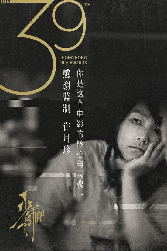 随后,《少年的你》官微发文分享监制许月珍想说的一些话:“香港电影金像奖的荣誉是对我们整个团队的肯定,电影中讲述的是少年的乐园,拍电影的过程也是我们这一群人的乐园。《少年的你》是我和曾国祥两个人头一回自己做电影,我们要做一部勇敢的电影。做电影的路很孤独,还好有一群好朋友们陪着我们一路走下去,这是做这个电影最幸福的事情。感谢所有的团队和所有的伙伴,谢谢一路上帮助过我们的所有人,希望以后给观众们带来更多好的作品。”