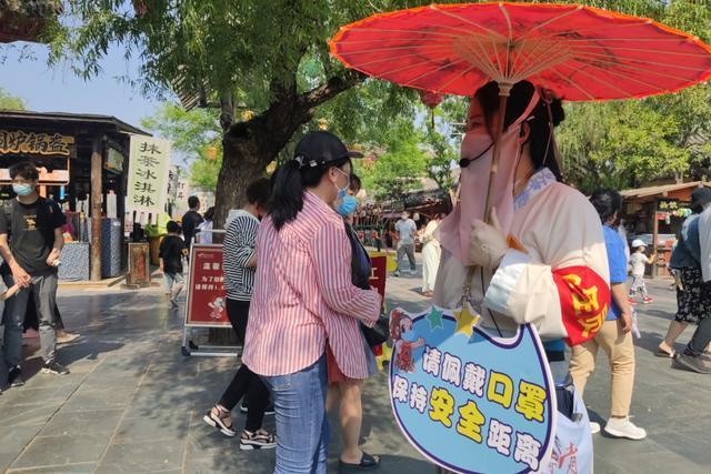 说完历史人文,武汉也有吃货的“天堂”,著名的“美食一条街”户部巷,仅仅150米长的百年老巷,却被誉为“汉味小吃第一巷”。在五一假期期间,部分商户开始营业,同样是在出入口有登记、健康码、测体温的安全措施,进入店内用餐还需二次扫健康码、测量体温。
