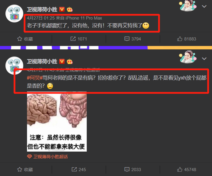 前段时间,该工作人员跟肖战的粉丝也有渊源,之前网传何炅邀请肖战参加《向往的生活》,此举引发了抵制肖战的网友极大的不满,这些网友跟粉丝互扯头花,甚至开始对何炅展开人身攻击,这位工作人员忍无可忍,最终只好发微博澄清“没有他,没有!不要再艾特我了”“骂何老师的是不是有病?招你惹你了?胡乱造谣”。