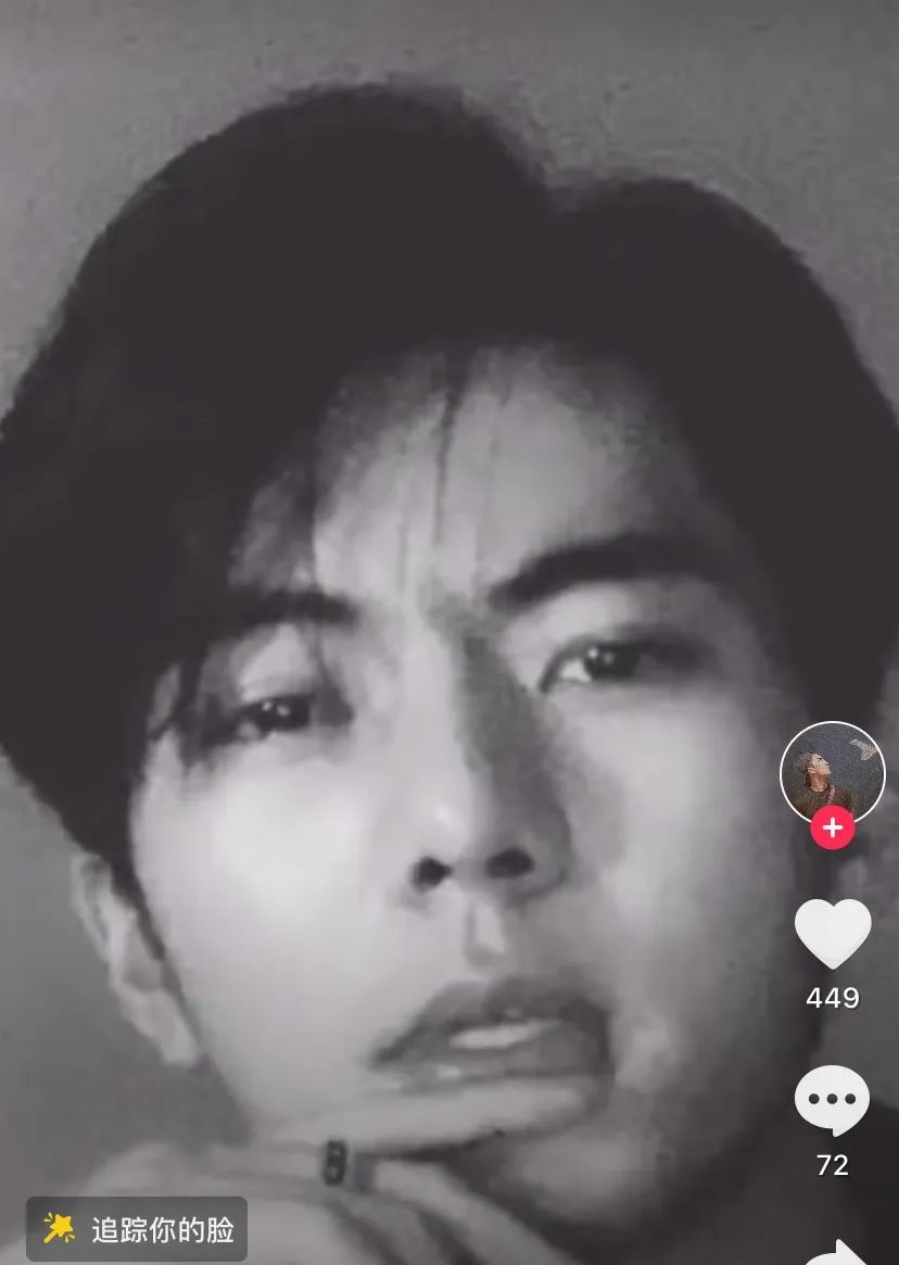黑白滤镜一加,颇有上世纪八十年代帅气男生的感觉,眉眼还有点炎亚纶的味道。