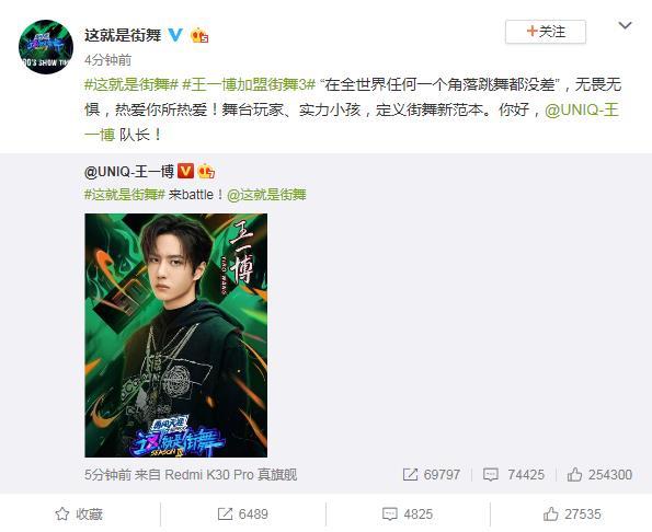 王嘉尔加盟街舞3 王一博官宣正式加盟