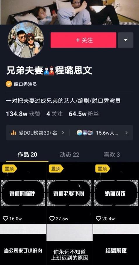 笑果文化告诉南都记者,目前其旗下艺人还在进行短视频尝试,如程璐和思文在抖音上的兄弟夫妻节目等。南都记者留意到,程璐和思文在抖音于2020年3月1日发布第一个短视频,截至目前,已经发了20个短视频,积累粉丝64.5万人,其中被点赞最多的视频获得了27.5个点赞。