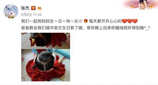 随后,张杰晒出双胞胎女儿的照片庆祝谢娜的生日,还称已经教女儿唱中英文生日歌,等妈妈晚上回来唱给她听。