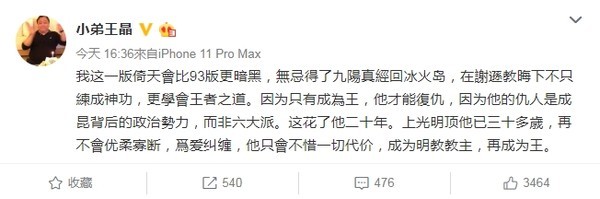 ▲王晶透露新版更暗黑。(图/翻摄自微博)