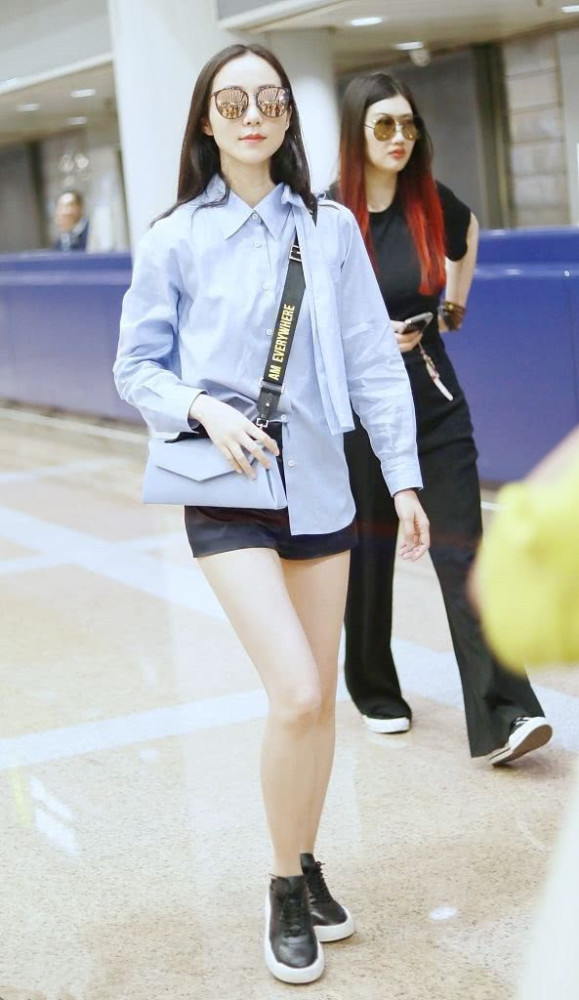 继续看韩雪的这身私服,看韩雪身穿一套亮片色的裙子,然后将裙子的腰带给系上,瞬间就让自己的身材好了起来,与此同时,穿上亮片裙,露出一双腿的韩雪看起来很有女神范呢。这不,又看到韩雪身穿蓝色衬衫,将衬衫一角塞进裤子,搭短裤可时尚了!来看下。