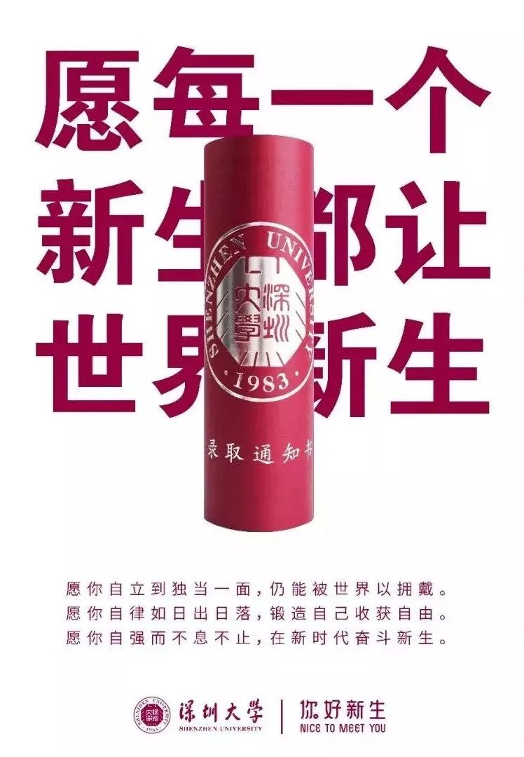 愿每一个新生,都让世界新生。——深圳大学录取通知书