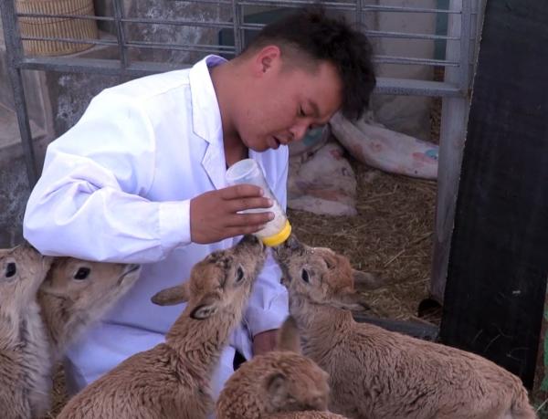 龙周才加说,平时根据每只小藏羚羊的食量,适当增加奶量,但还需要培养它们野外吃草觅食的能力,还要训练它们奔跑。