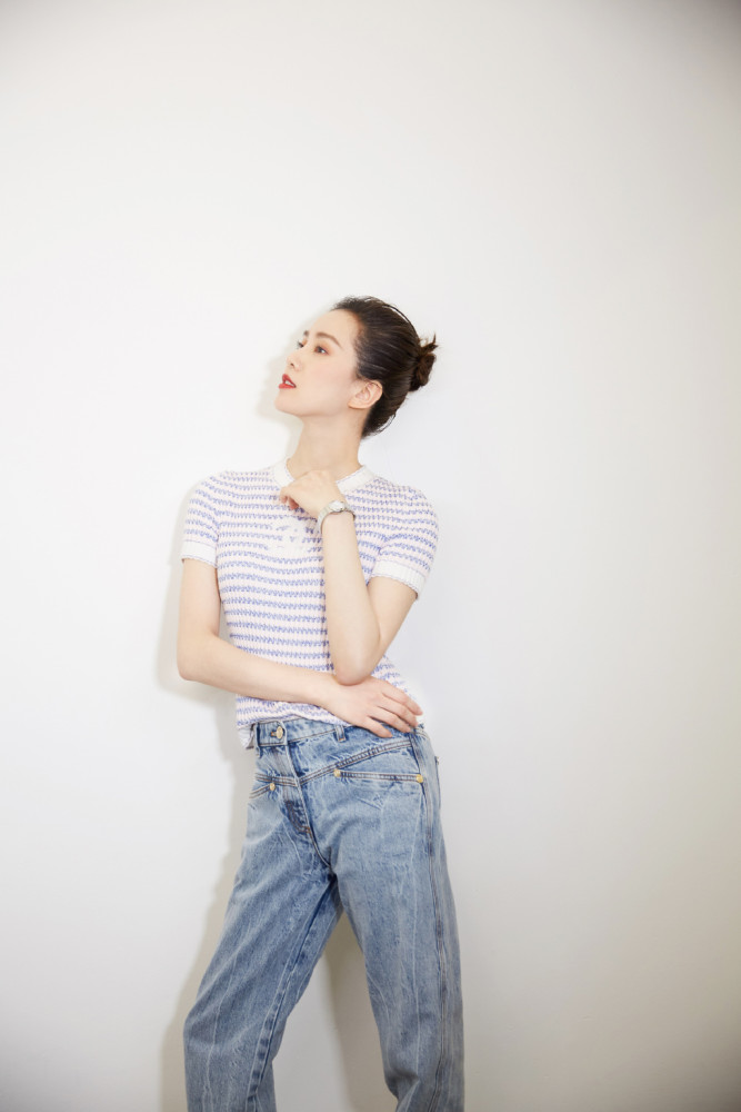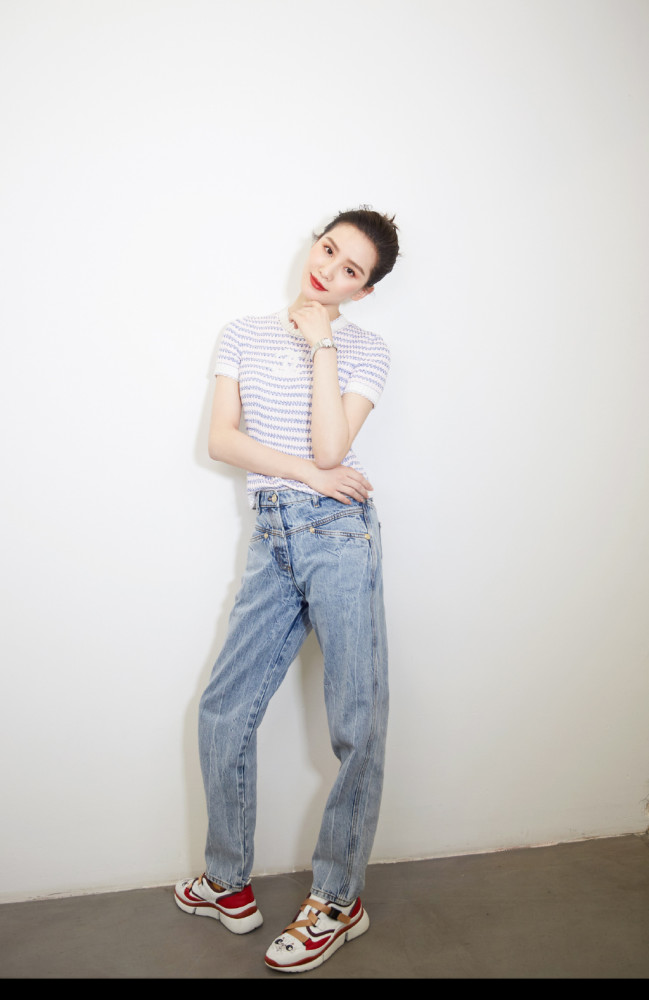 刘诗诗身材完美,身穿简约T恤的她下身搭配了牛仔裤,这样简单的搭配简约不失时尚,显得年轻有活力。不得不感叹刘诗诗身材好,这么细的裤子被她穿出宽松感。