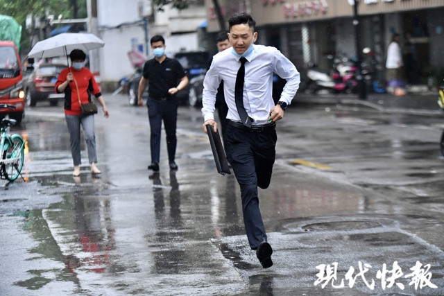 △5月8日中午,南京下起一阵急雨,路人躲闪不及