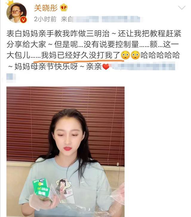 而童星出道的关晓彤则是和大家分享了妈妈亲手教她做三明治的教程,结果却因为量太多直言:我妈已经好久没打我了,言语之中不难看出她与妈妈的关系非常好。