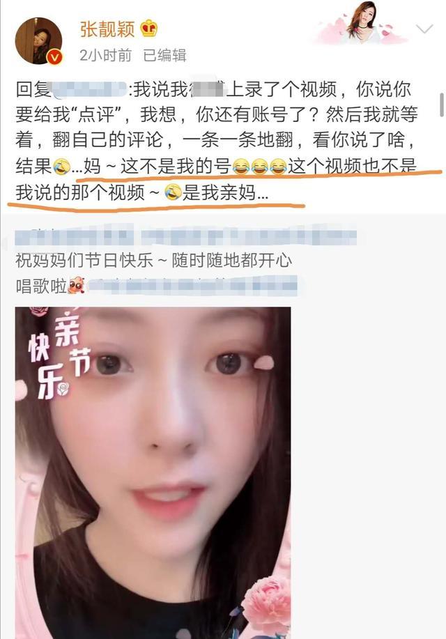 不过最搞笑的还是张靓颖,原本是即兴唱了一首《听妈妈的话》,为妈妈送上节日的祝福,结果妈妈留言感谢却跑错号闹了笑话。