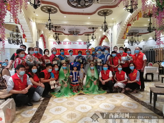 广西新闻网南宁5月10日讯(记者 蒋尧)“我和我的祖国,一刻也不能分割,无论我走到哪里,都流出一首赞歌……”5月10日下午,阿斯古丽美食店传来阵阵歌声和欢笑声,原来是当天正在开展“民族团结一家亲· 祝天下母亲节日快乐”母亲节公益活动,现场的青年志愿者们为壮族、瑶族、苗族、维吾尔族、俄罗斯族等少数民族的妈妈代表们献上节日祝福。