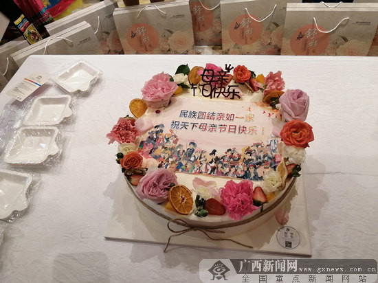 志愿者现场准备了具有民族特色的母亲节蛋糕。广西新闻网记者 蒋尧 摄
