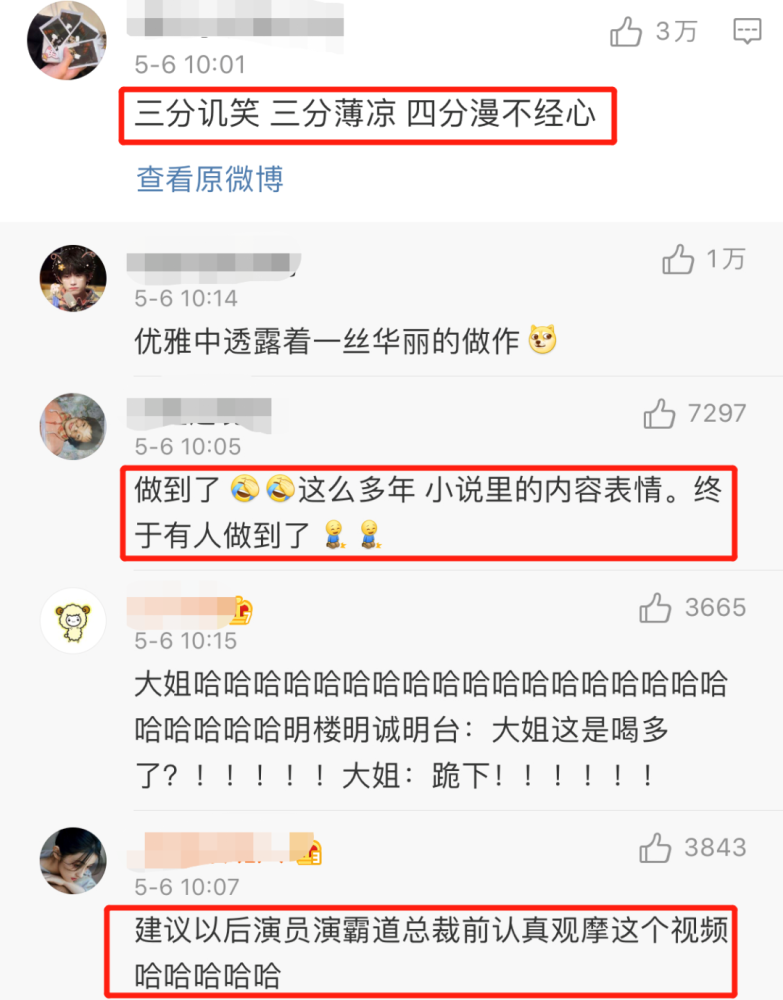 还有网友评论:终于知道小说中描写的“三分讥诮,三分薄凉,再加四分漫不经心”,到底是个什么表情。