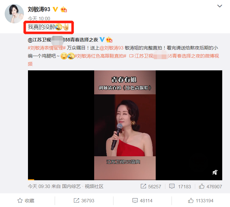 涛姐激情转发,在线辟谣,“我真的没醉。”