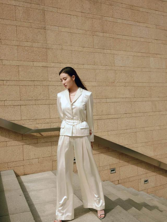 宋佳站在阶梯旁,看起来就像是在拍时尚大片一样,这就是传说中的随便一拍就可以拍出时尚大片的感觉吧!宋佳的身体线条配上楼梯和墙面的几何线条,真是有一种说不出的美丽,也许这就是拍照的美学吧。宋佳穿上白色西装,真是有一种很高冷的感觉,有一种让人无法接近的气质,宋佳这样的气质也是很受人喜欢的。