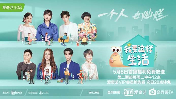 5月8日,爱奇艺自制综艺节目《我要这样生活》在爱奇艺、奇异果TV正式上线,节目自第二期起每周二中午12点更新,VIP会员抢先看,次日20点转免。作为创新聚焦青年潮生活的观察类真人秀,《我要这样生活》将通过记录明星嘉宾在吃、穿、住、行以及情感等多个方面上的生活状态,真实呈现各类青年人群的当代生活画像。节目由G.E.M.邓紫棋、范丞丞、小鬼-王琳凯、颜如晶、周笔畅共同组成“蜗牛家族”首发阵容,一同展现自己的饮食起居与生活态度。与此同时,由谢楠、杨迪、李璐尔组成的“蜗牛家族”也将在观察室内,对每位嘉宾的表现进行探讨与交流,在不同的观点碰撞中传递新时代青年的潮流生活理念。