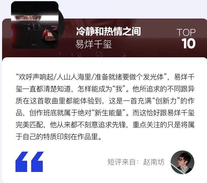 故而,易烊千玺的《不分昼夜》能位列“乐评人推荐榜”第12名,实属不易。