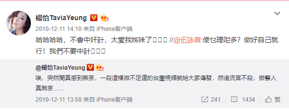 最后逼到杨怡出来发微博:不要误会啦,太爱我姐妹了!
