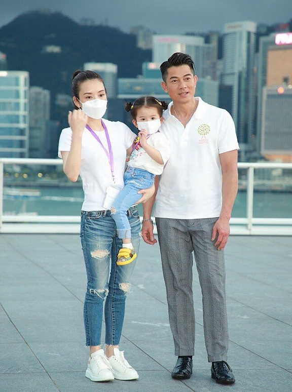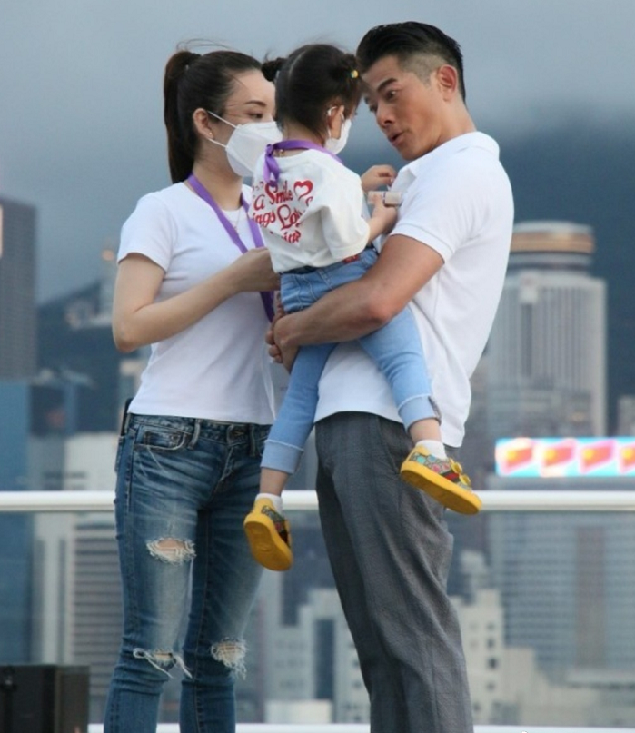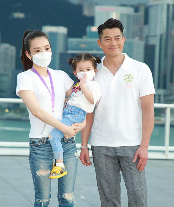不得不说郭富城真是娶到一个宝了,虽然他今年已经有55岁,年过半百的年纪了,依然还有福气娶到了一个比他小22岁的娇妻方媛,还为他生了两个女儿,方媛抱着的就是他们俩的大女儿Chantelle,一家三口都是穿着亲子装,白T恤搭配上牛仔裤,看起来非常的温馨了。