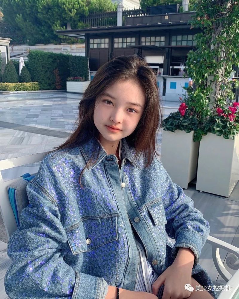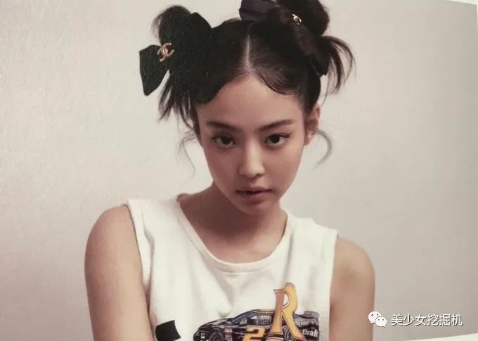 却拥有Jennie同款高颅顶,浅瞳色、眼尾上挑的慵懒感,活脱脱一个年少版的猫系美少女。
