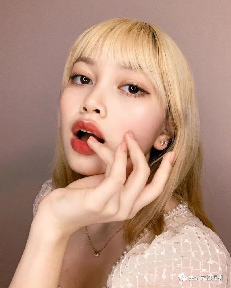 人间芭比lisa的颜我们也分析过,超大芭比眼,胶原蛋白满满的脸蛋,厚版微笑唇,韩妆的水嫩感也掩盖了lisa不够白的短板,组成了芭比娃娃即使感。