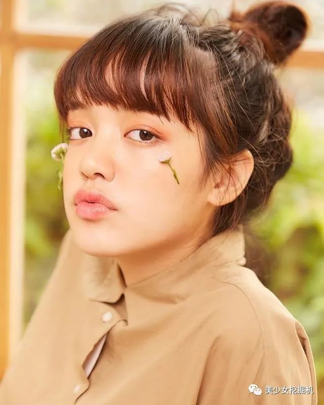 再加上齐刘海,既有甜美可爱的一面,又有混血芭比感。