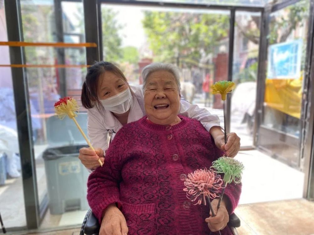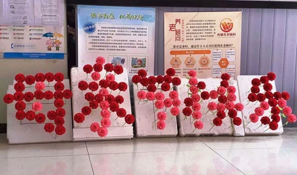 为了让老人们开心,在母亲节到来前几天,展览路街道百万庄养老照料中心的工作人员们就开始了准备工作。他们起早贪黑地折纸,并精心为每个老人准备了花束;母亲节当天,特意为老人换上鲜艳的衣服。大家衷心希望,能够通过这种方式“隔离不隔爱”,陪老人过一个温暖的母亲节。