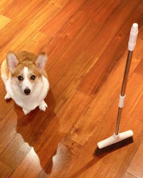 于朦胧家的白扫把,可爱的短腿柯基,沉稳厚重的实木地板,可以想象家装没少花钱。