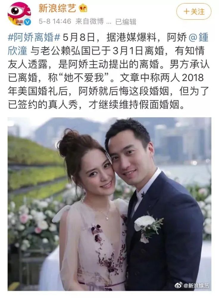 阿娇的前夫赖弘国洋洋洒洒地写了一篇微博,一句“她不爱我了”,为这段婚姻画上了句号。
