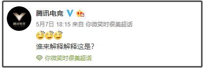 前天,@腾讯电竞发了条微博,一句“谁来解释解释这是?”加上“你微笑时很美”的超话,不了解状况的人,还以为微笑出啥瓜了。