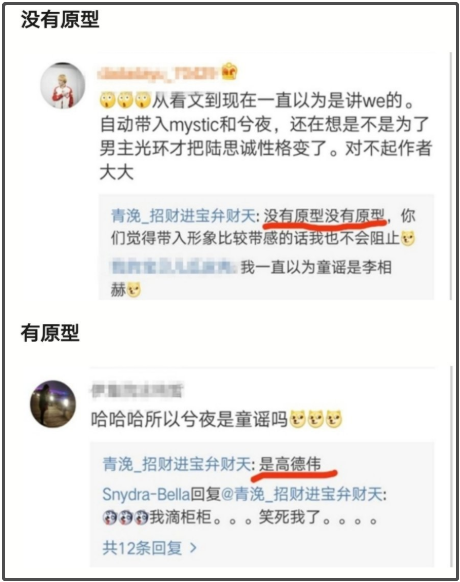 有时候还反复横跳,先说没有原型,后来又直接回复读者某人物的原型是韦神。