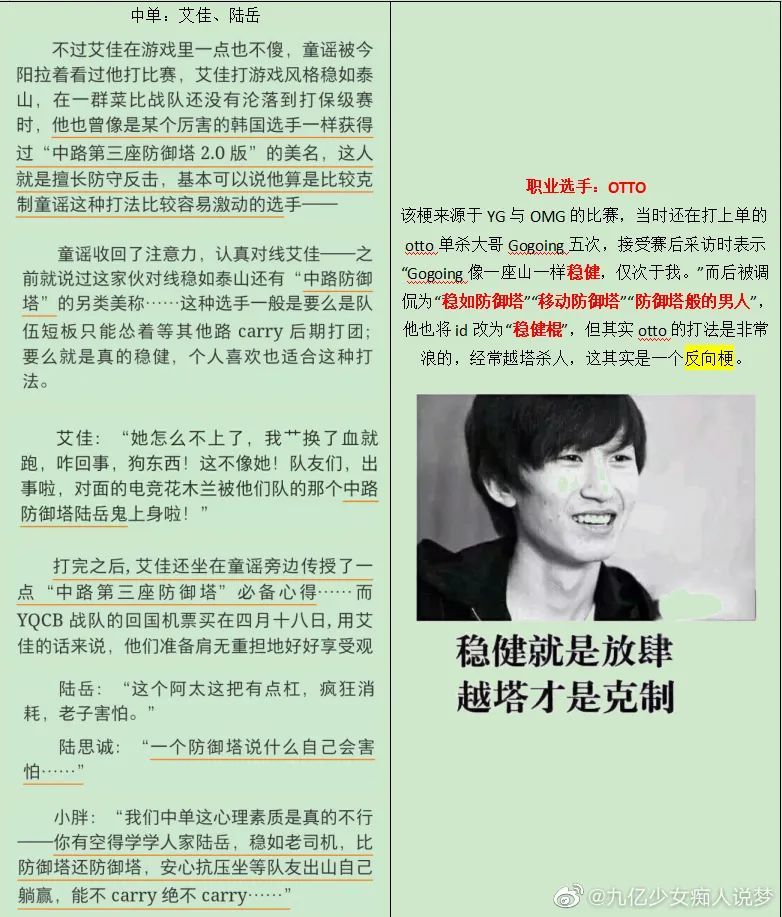 这么多融梗桥段的存在,让这部作品比起被称为一本热血励志的电竞正能量小说,更像是个对LOL电竞有一定了解的作者,玩梗自嗨的产物,谈恋爱要素只是添头的那种。
