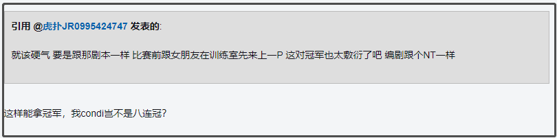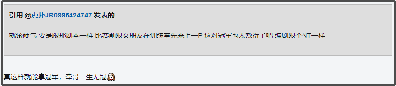 或许是以前写耽美肉文写习惯了,据网友介绍,小说里还包含搞颜色桥段,“比赛前在基地和女友来上一炮。”