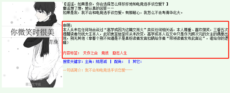 这点是不是真的,我还未去考证。但当在晋江文学城的作品页面看到《你微笑时很美》曾因“章节色情尺度超标”被系统封锁时,我倾向于信了。