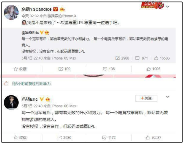 腾讯电竞、腾竞的市场负责人和一众LOL解说、主持人在得知前因后果后,纷纷出来表态。“可以不爱,但请尊重”。