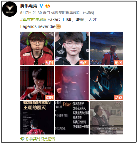 腾讯电竞尤其委婉,那条“怎么回事”的微博之后,连发了几个带“真实的电竞”标签的博文,提到了微笑、Faker的努力和自律,提到了被大家热爱的电竞背后应是汗水和梦想。