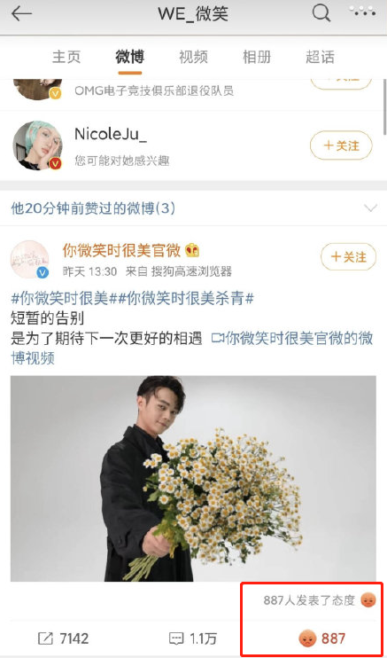 而被偷ID的微笑本人,则用自己的微博账号给《你微笑时很美》点了个实为愤怒的“赞”。