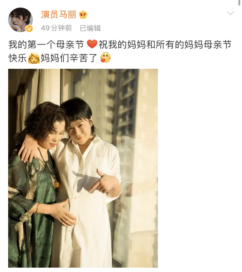 5月10日,一年一度的母亲节,一大早,大家就以各种各样的方式表白自己伟大又美丽的美女妈妈。网络上铺天盖地的花式表白更是使这个平凡又特别的节日充满幸福温馨的味道。而就在这样特别的日子里,马丽在个人社交平台网站更新动态,她在动态中称:“我的第一个母亲节,祝我的妈妈和所有的妈妈母亲节快乐,妈妈们辛苦了。”并且晒出了一张自己怀孕时和母亲的合影。