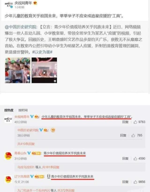 此事引发巨大热议,官媒纷纷发文称少年儿童关乎祖国的未来,不应该变成追星应援的工具。