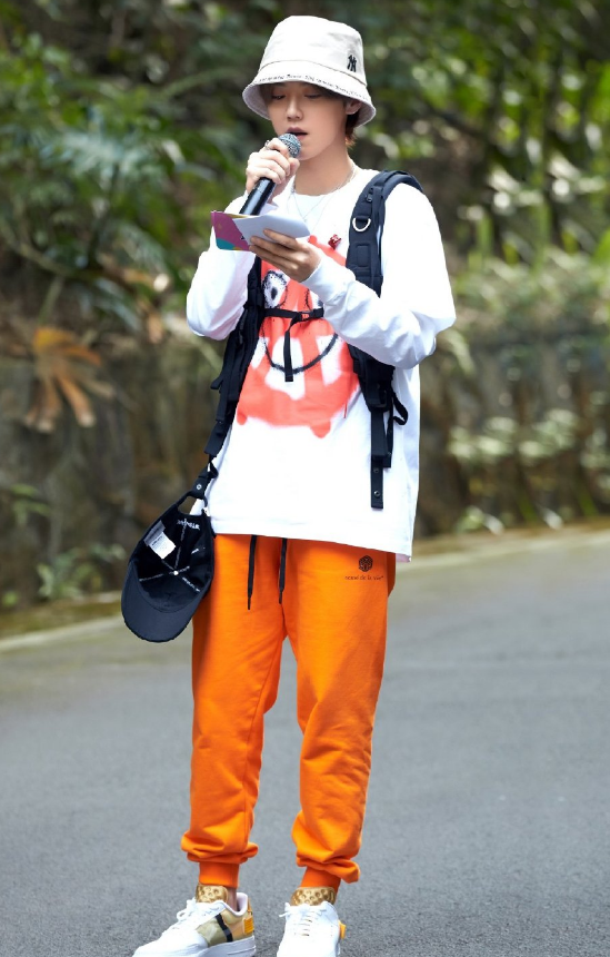 而这一次,鹿晗以一身日系学生装上了综艺,因为渔夫帽和满身橙黄色的穿搭看起来非常像日系小学生们上学路上的穿搭方式。这样的一身装备也引发许多人的热议,一个白色渔夫帽在拍外景的时候能够很好的遮阳效果,不仅如此,渔夫帽也是凹造型的必备单品之一,这样的搭配确实很有格调。更加特别的是鹿晗还通晓时尚圈的“叠穿”大法,一身白色Nike长袖内搭加上红色印花图案的白T叠穿在一起,满满的运动风格太让人惊喜了。