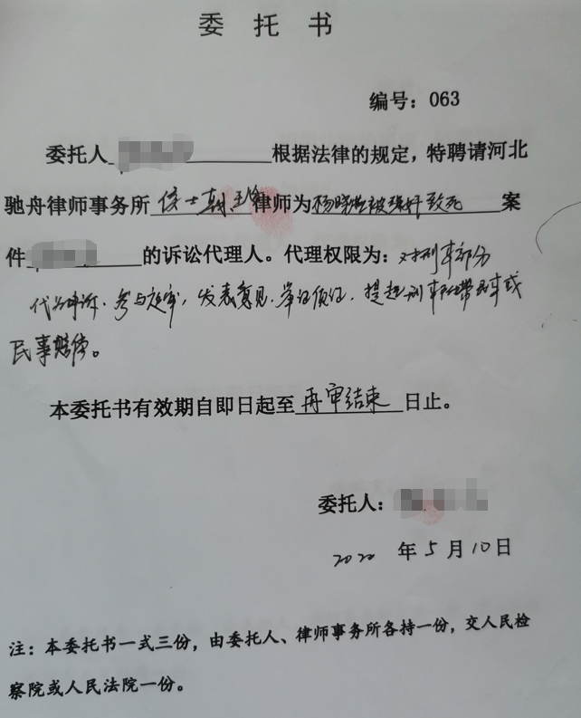 5月10日下午,记者从被害女童杨晓燕舅舅处了解到,家属已全权委托河北驰舟律师事务所律师侯士朝、王飞处理此案申诉事宜。
