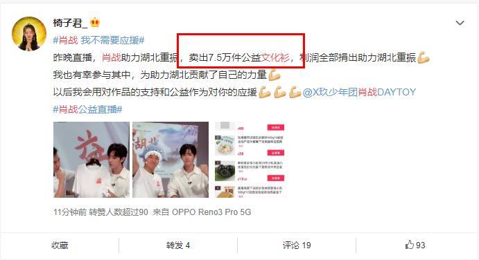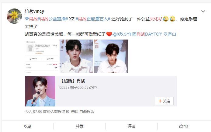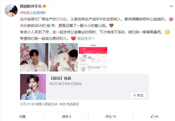 直播的时候,“应援”的粉丝狂买他的“益”T恤,然而直播刚刚结束,肖战就发微博称自己不需要应援,这种对比有点讽刺。