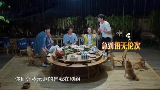接下来吃饭后,进入到游戏环节,彭昱畅的表现真的是自己用实力将人设弄“塌”。