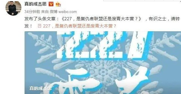 他写的这篇文叫《227,是复仇者联盟还是废青大本营?》许多人看到后转发了,文章确实写的很不错,随后被许多微博网友私聊问是收了多少钱办事,他只好再发了一条微博无奈回应:请肖战老师的团队速速打钱,他们都觉得我收了钱,我查了下余额,没有。