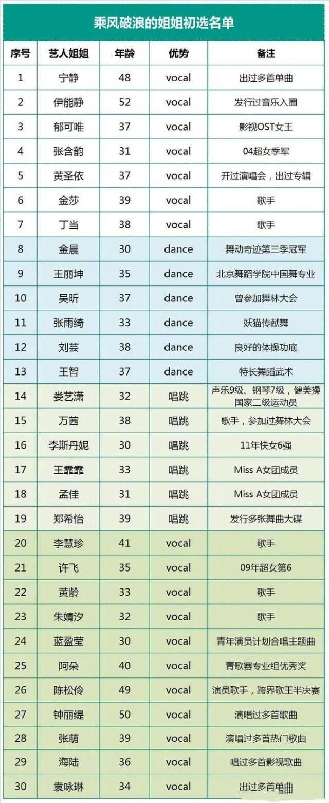 这个名单里,在大众的印象中,除了郁可唯李斯丹妮张含韵王心凌许飞孟佳是歌手,其他的都是演员,附加两个主持人。