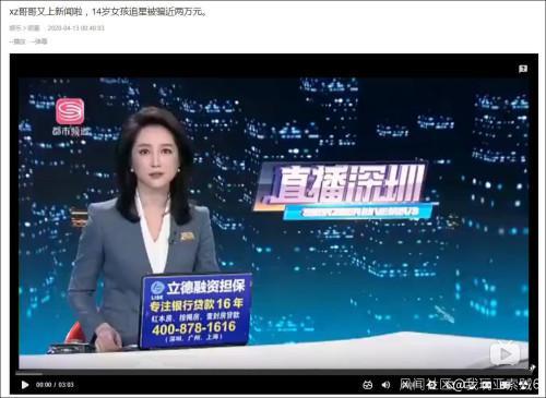 《14岁女孩为追星被骗近2万元》链接截图