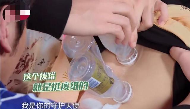 从节目中流出的片段我们也能看到,他们三人用来拔罐的道具并不是真正像养生馆中的专业道具而是一些酸奶的瓶子。在拔罐的过程中,邓伦背上的酸奶瓶因为刚被喝完还没进行清洗,就直接被拿来当做道具来用了,期间酸奶还从邓伦的背上流了下来。